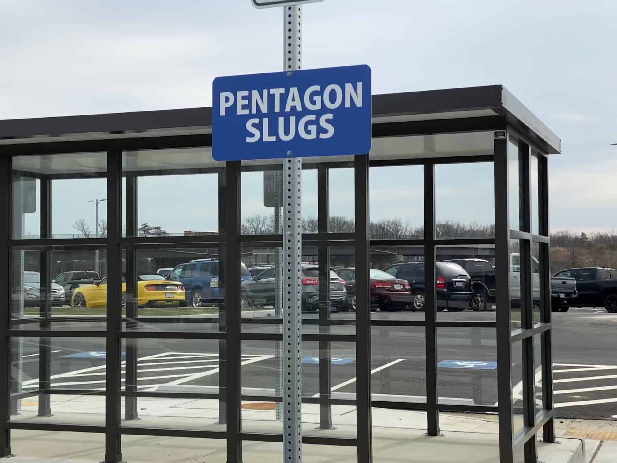 The Pentagon is the first one to adopt slug pick sign (image from maps.google.com) Check pickup locations details at https://sluglines.com/slug-pickup/the-pentagon/
